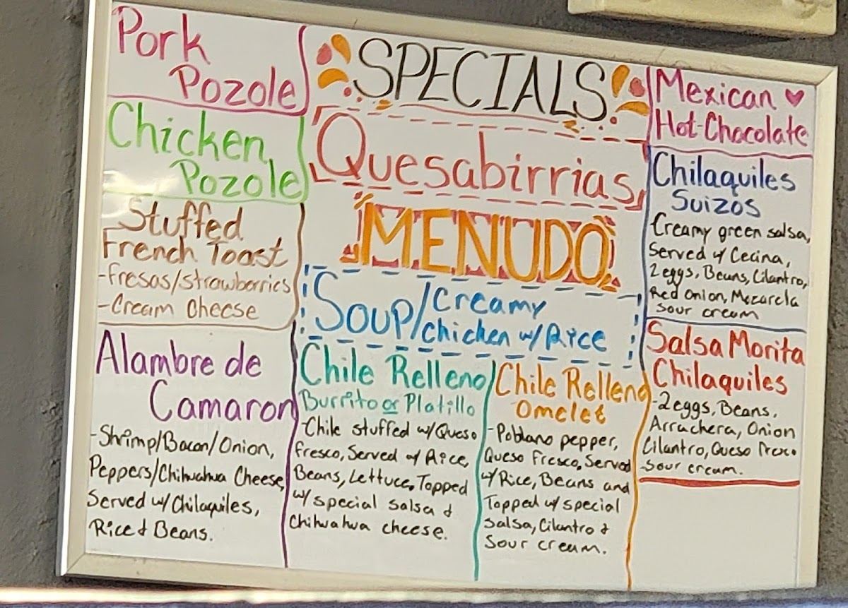 Moving beyond chilaquiles, the Specials section highlights the irresistible Quesabirrias, perfectly toasted and oozing with cheese, a favorite among guests who want a hearty, flavor-packed dish. The Skillets selection broadens the experience even further, blending American-style breakfast comfort with global flair. From the Mediterranean-inspired Greek Skillet to the zesty Cajun Shrimp Skillet, each one offers a creative combination of ingredients that make breakfast feel exciting. The Gypsy Skillet and Irish Skillet stand out for their hearty, savory appeal, while the Chorizo Skillet brings a spicy kick that pairs beautifully with the restaurant’s relaxed, cheerful vibe.
