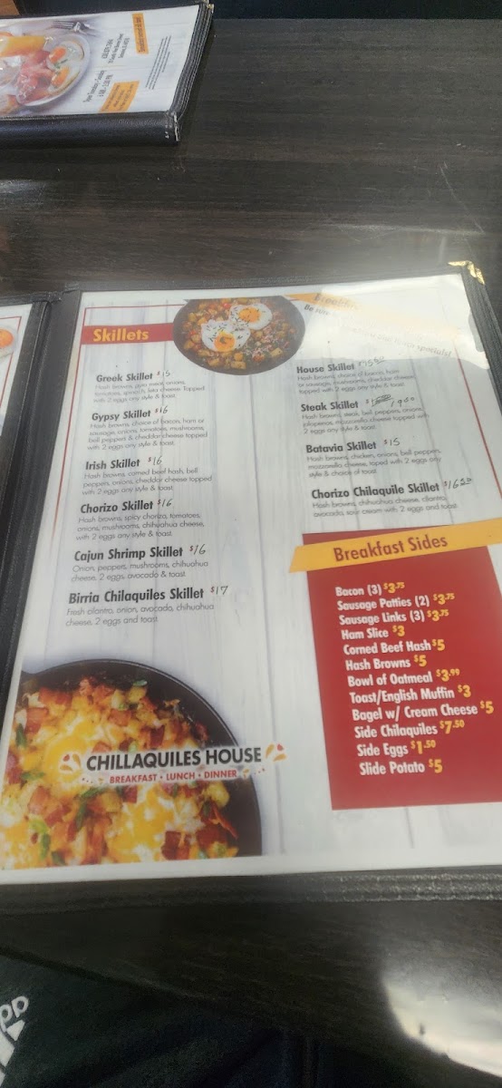 Rounding out the experience, the Breakfast Sides-including crispy bacon, sausage patties or links, ham slices, and rich corned beef hash-make for the perfect companions to any main dish, especially for those who like to build their own balanced breakfast plate. And for diners looking for something unique, options like the House Skillet, Steak Skillet, Batavia Skillet, and Mole offer a deeper dive into the restaurant’s creativity and commitment to home-cooked goodness. Together, these selections make the Chilaquiles House Menu a standout in Batavia’s breakfast and brunch scene. It’s the kind of place where every plate feels like a warm welcome-colorful, satisfying, and made with genuine care. Whether you’re craving traditional Mexican comfort or a skillet that feels like a modern classic, this cozy restaurant proves that good mornings start with great food and a friendly table at Chilaquiles House.